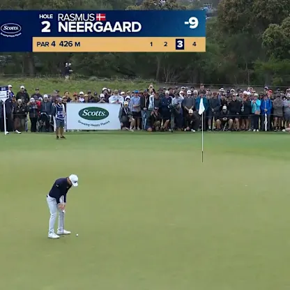 Rasmus Neergaard-Petersen holed his birdie putt from long range at the second on day three of the 2026 Crown Australian Open.