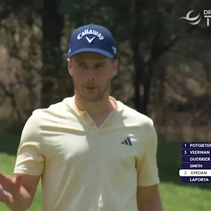 Aldrich Potgieter set up an eagle at the 14th with this stunning approach shot on day three of the 2025 Nedbank Golf Challenge.
