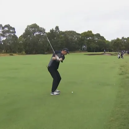 Elvis Smylie entertained the crowds at the ninth with this shot on day two of the ISPS HANDA Australian Open.
