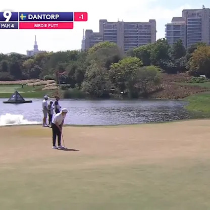 Jens Dantorp holes monster birdie putt at the ninth