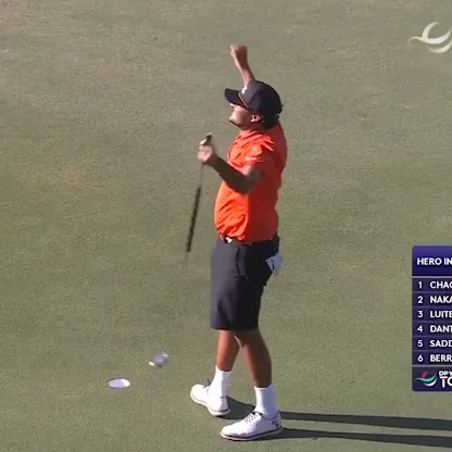Eugenio Chacarra chipped in for a bonus birdie on the 14th during the final round of the 2025 Hero Indian Open.