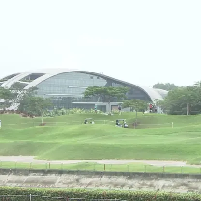 Jorge Campillo lands his second shot at the ninth hole to tap-in range at Laguna National Golf Resort Club.