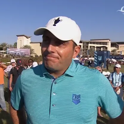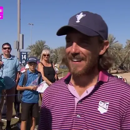 Tyrrell Hatton holes a 60-foot eagle putt on the 18th hole as he and Matt Wallace halve their morning foursomes match with Thorbjørn Olesen and Niklas Nørgaard at the 2025 Team Cup in Abu Dhabi.