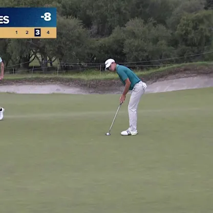 Alex Fitzpatrick judges pace and break perfectly to birdie fifth from off the green