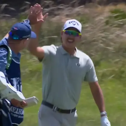 WATCH: Min Woo Lee holes approach shot at tenth for eagle