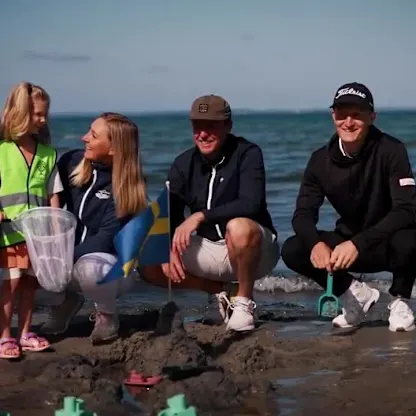 Players join local pre-school children and staff in beach clean ahead of Volvo Car Scandinavian Mixed