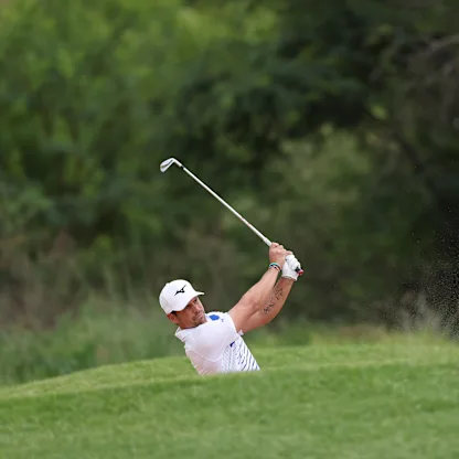 South Africa's Christiaan Bezuidenhout holes from a bunker at the 11th hole in round two of the 2026 Nedbank Golf Challenge in honour of Gary Player.