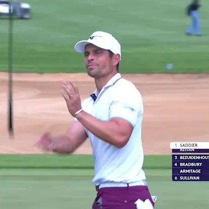 Adrien Saddier hits a remarkable bunker shot in round two of the Nedbank Golf Challenge.